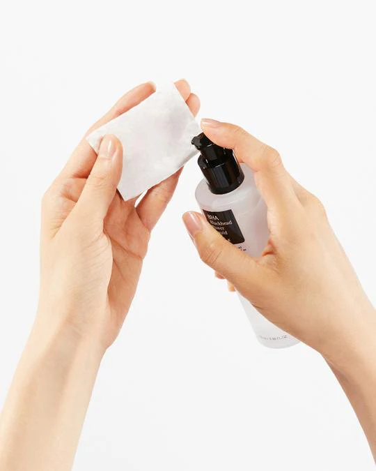 Solución exfoliante enriquecida con un 4 % de beta hidroxiácidos (BHA) uno de los ingredientes más efectivos para tratar los puntos negros y poros tapados.