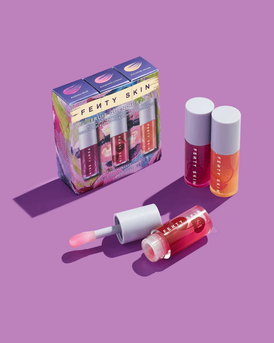 Set separable edición limitada de tres aceites labiales que hidrata y fortalece la barrera de humedad de los labios para lograr un aspecto voluminoso.