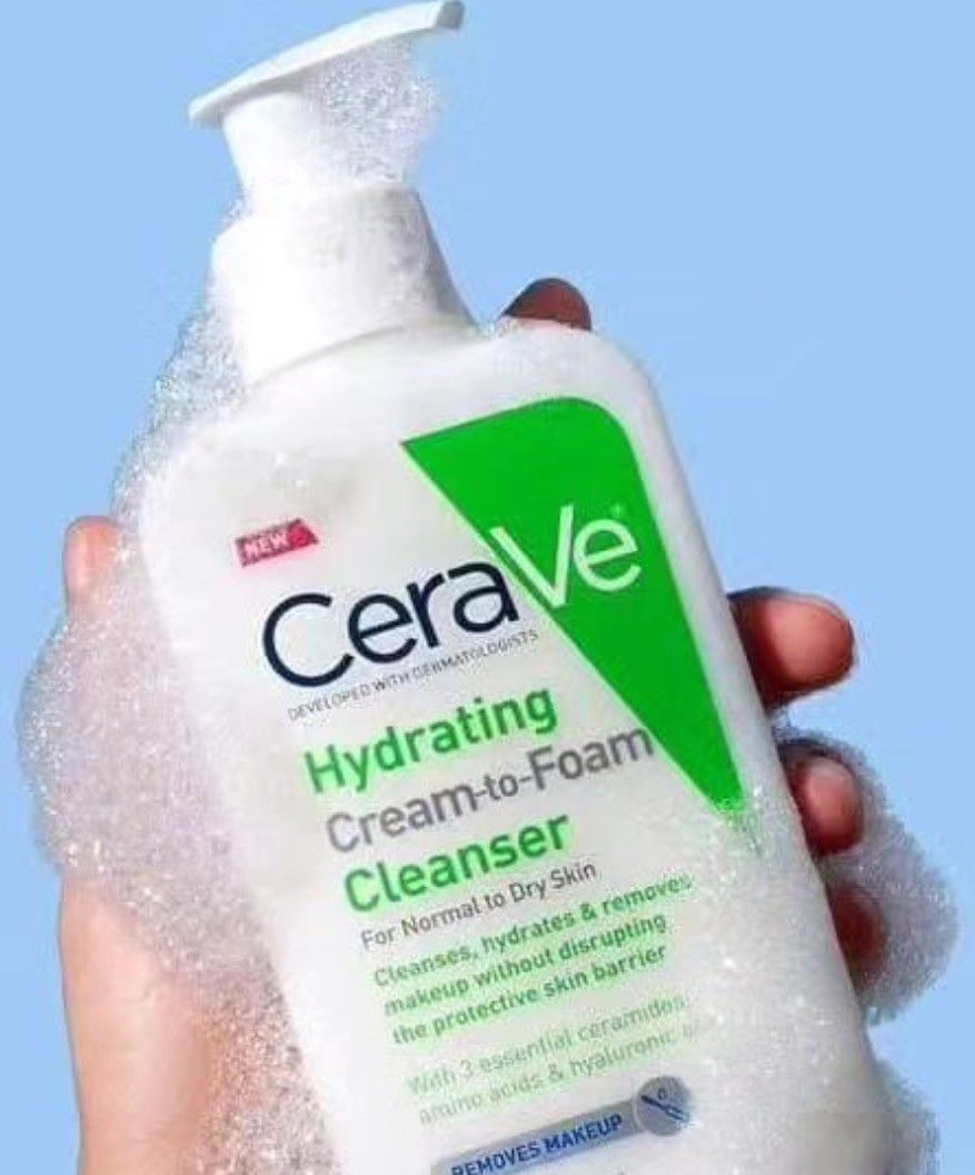 Espuma hidratante para limpiar y desmaquillar el rostro especial para pieles normales a secas que elimina fácilmente los restos de maquillaje, la suciedad y grasa.