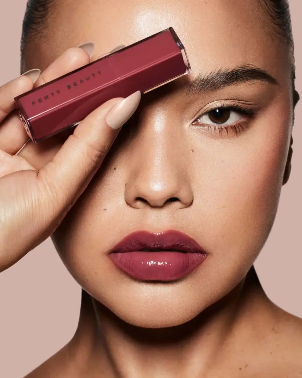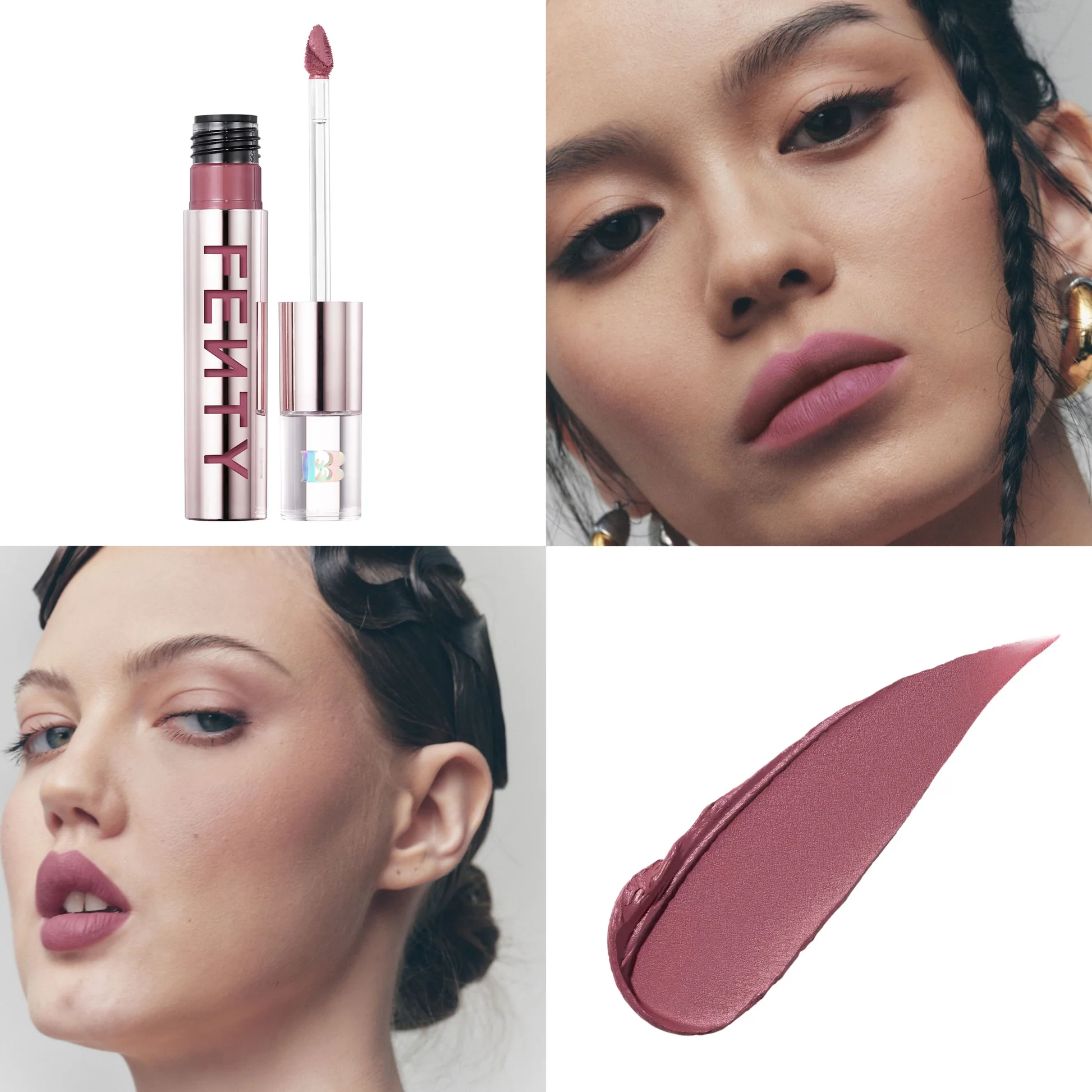 Set de los productos más vendidos en tono malva de Rihanna para definir y obtener unos labios radiantes, contiene el Gloss Bomb Universal Lip Luminizer, el Fenty Icon Velvet Liquid Lipstick y el Gloss Bomb Stix High-Shine Gloss Stick en tamaño completo.