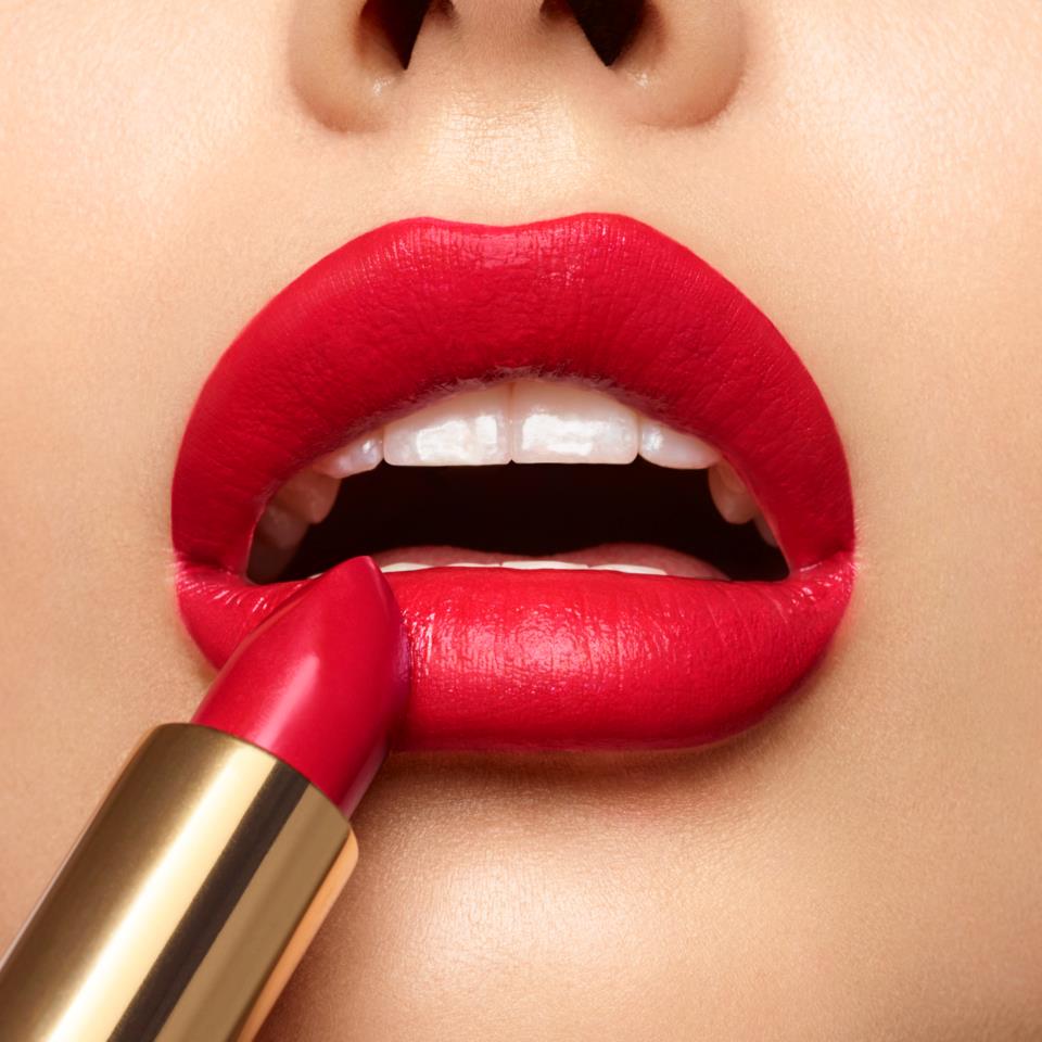 Barra de labios rellenable de cobertura total en una textura cremosa y ligera para un look satinado de alta costura y una sensación de labios desnudos.