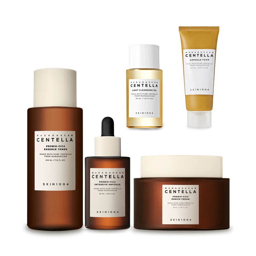 Este Kit contiene Probio-Cica Essence Toner de 210ml, Probio-Cica Intensive Ampoule de 50ml, Probio-Cica Enrich Cream de 50ml, Light Cleansing Oil de 30ml y Centella Ampoule Foam Mini de 20ml.