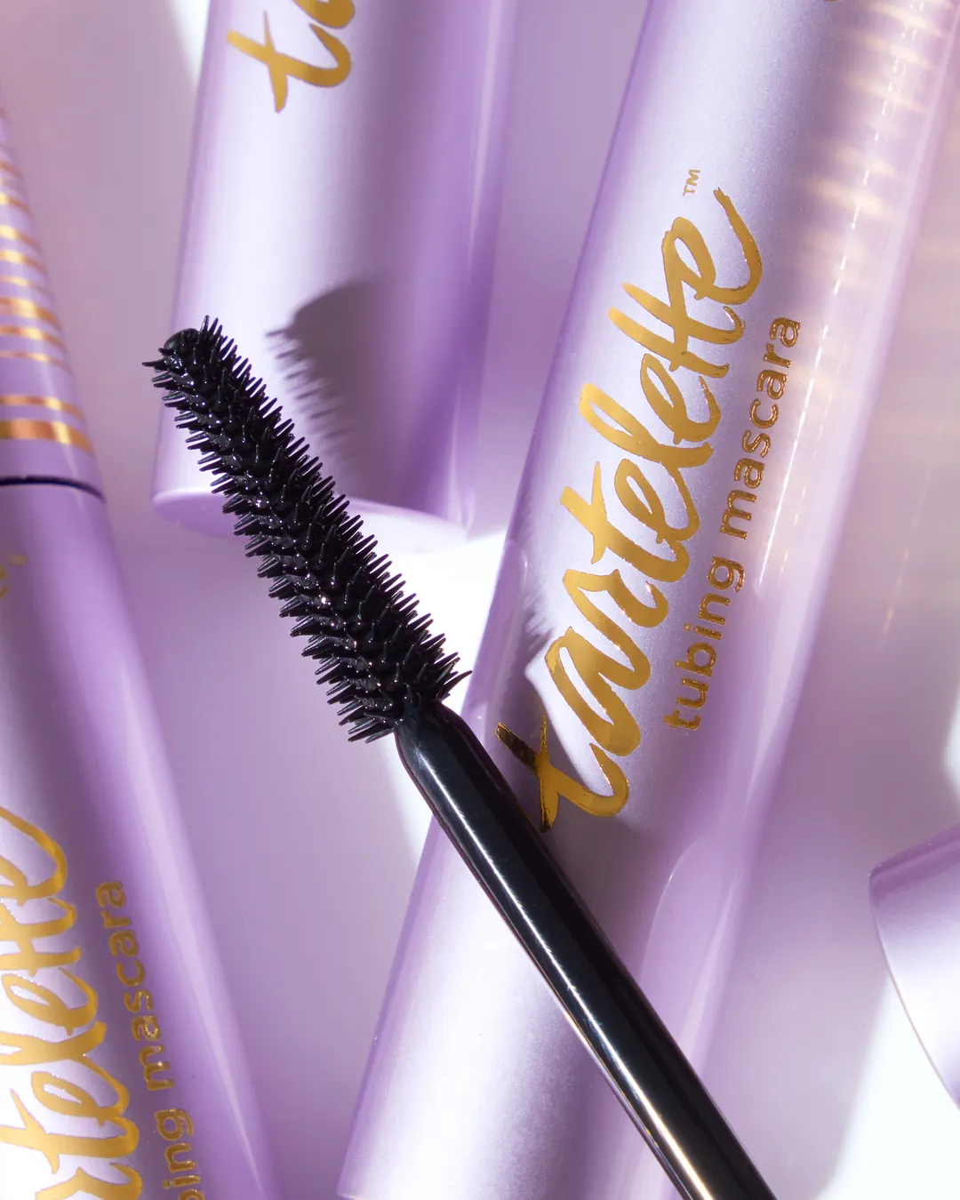 Máscara de pestañas con efecto de extensión de pestañas, proporcionando volumen, al tiempo que alarga y riza envolviendo cada pestaña en «tubos» de alargamiento en lugar de pesarlas con capas de pigmento.