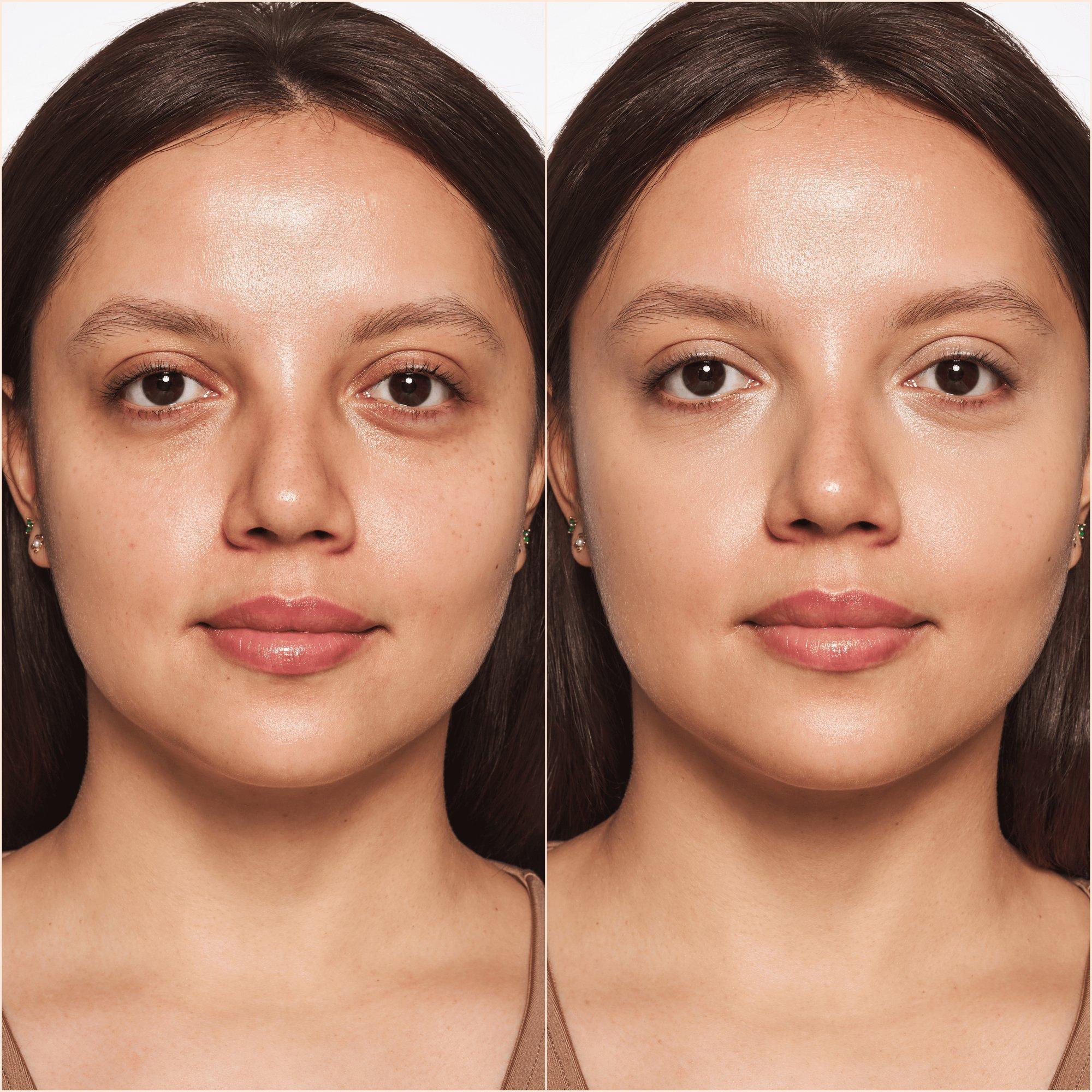Corrector hidratante hasta por 18 horas con acabado mate y alta cobertura que contiene Ácido Hialurónico fundiéndose con la piel sin asentarse en las líneas finas, pero aún así por lo que mantiene la zona del contorno de ojos hidratada durante todo el día.